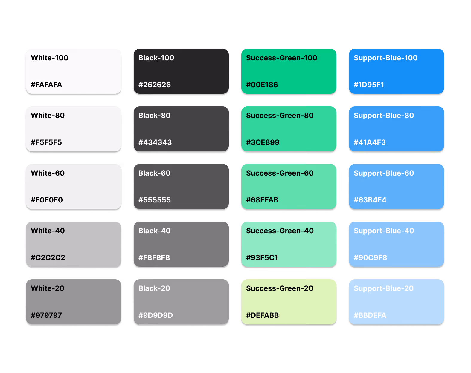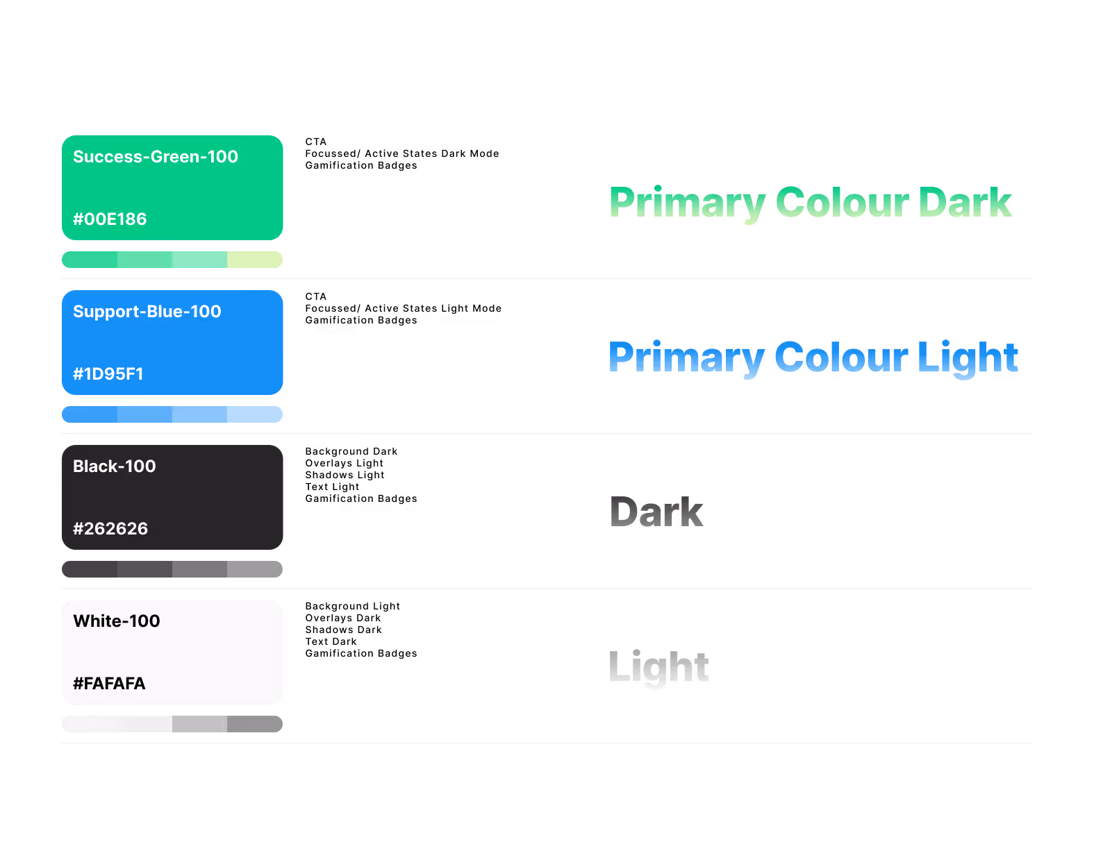 Colour Psychology: The palette relies on a neutral black and white foundation to reduce visual fatigue. Green (symbolising growth and success) and Blue (conveying calmness and support) were chosen to promote clarity and motivation.