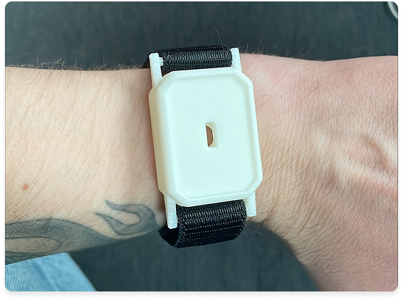 We consciously kept the Arduino and breadboard external while housing the vibration motor inside a custom 3D-printed wearable case. This separation allowed us to simulate a realistic, ergonomic form factor on the wrist for accurate user testing, without being limited by the space constraints of our current, non-miniaturized circuitry.
